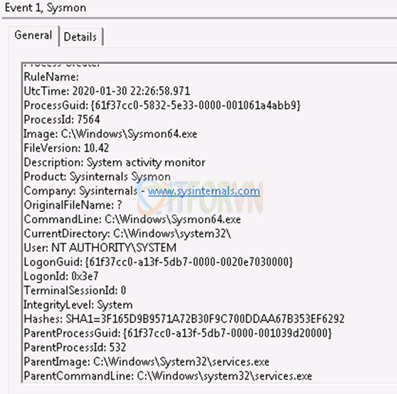 Sysmon là bộ công cụ của Microsoft dùng để kiểm tra những hoạt động của Windows: process, network, file… và đưa vào windows event log. 1 vài ví dụ về log sysmon export ra event viewer