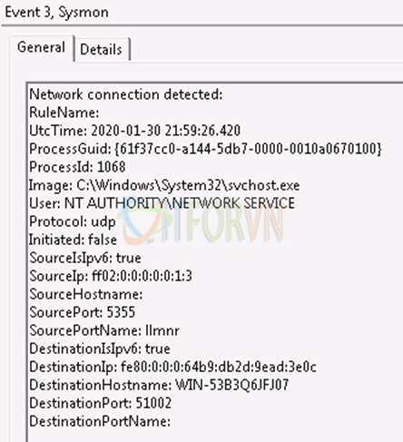 Giải thích: Ở ví dụ 2 là cấu hình cho eventlog DnsQuery. Với event này groupRelation là or nên chỉ cần đúng với một điều kiện. Sau đó là nên khi đúng với điều kiện bên dưới thì sẽ được loại trừ không đưa và eventlog: