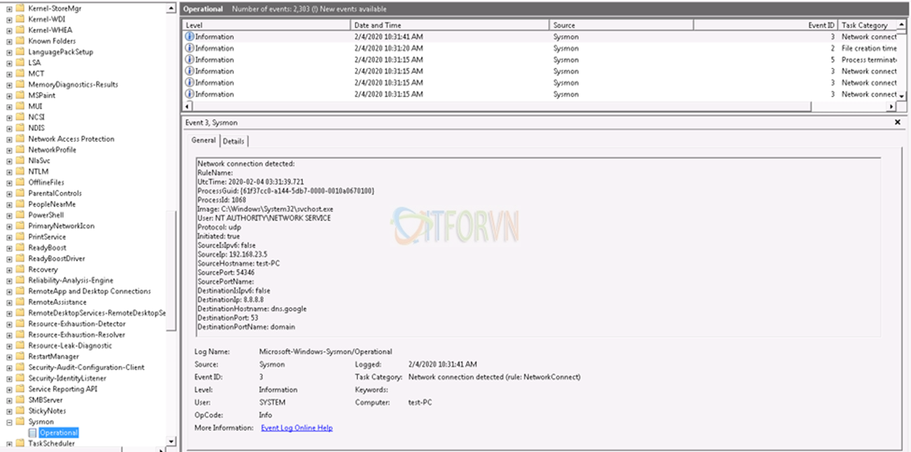 Xem log sysmon trên event viewer