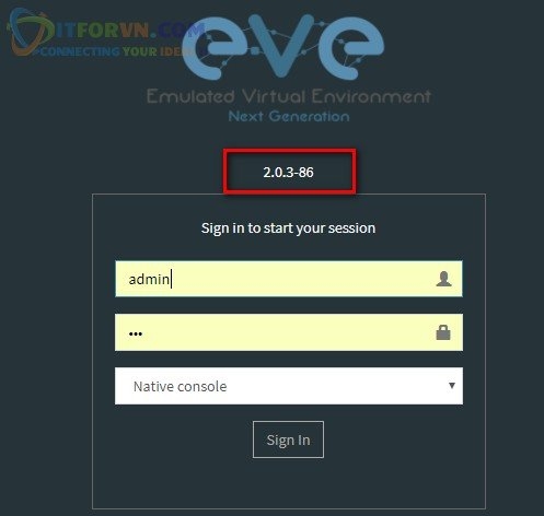 A: gõ vào CLI của EVE các dòng sau: echo "DELETE from users where username = 'admin';" | mysql --host=localhost --user=root --password=EVE-ng EVE_ng_db echo "INSERT INTO users VALUES ('admin',NULL,'root@localhost',-1,'EVE-NG Administrator','85262adf74518bbb70c7cb94cd6159d91669e5a81edf1efebd543eadbda9fa2b',NULL,'','admin','',1);" | mysql --host=localhost --user=root --password=EVE-ng EVE_ng_db Sau đó chúng ta dùng lại default passwd: admin/EVE
