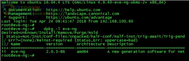 Cách 2: Vào CLI EVE gõ lệnh : “dpkg -l EVE-ng”