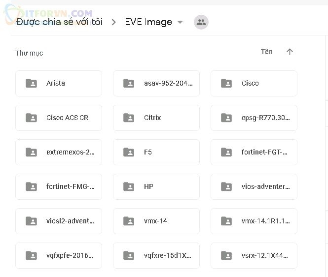 Do nhu cầu anh em sử dụng EVE ( phiên bản của là Unetlab) nên mình tổng hợp lại ở đây để tiện chia sẽ cho anh em. Các firmware đến thời điểm hiện tại ITFORVN có: