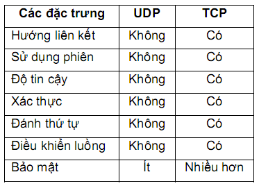- Giao thức đặt trưng của lớp Transport : UDP và TCP.