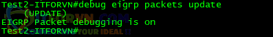 Tiếp theo ta tiến hành debug eigrp packets update