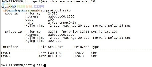Sw3-ITFORVN(config-if)#spanning-tree vlan 10 cost 300