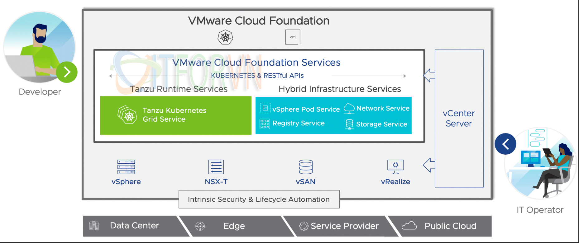 Đây là một giải pháp phần mềm phức tạp kết hợp các yếu tố từ VMware vRealize Suite, VMware vSphere with Kubernetes, VMware Integrated OpenStack, VMware Horizon, NSX và các dịch vụ khác hoạt động trong Cloud, on-premises hoặc hybrid infrastructures trong Trình quản lý SDDC Manager.