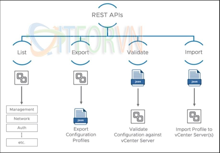 Nói ngắn gọn, vCenter Server Profiles là điều tương tự đối với vCenter Servers mà Host Profiles dành cho ESXi hosts. Giải pháp này cho phép bạn nhập (import) và xuất (export) vCenter Server configuration dưới dạng file JSON thông qua REST API, cho mục đích sao lưu và imported vào vCenter Servers khác.
