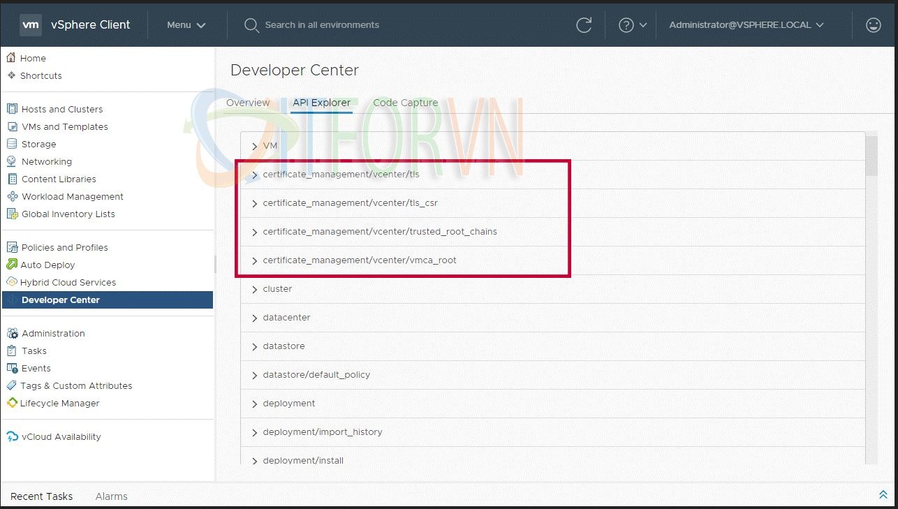 Hơn nữa, hiện đã có REST APIs để xử lý vCenter Server certificates, như một phần của scheme để đảm bảo APIs có mặt cho hầu hết mọi thứ trong vSphere: