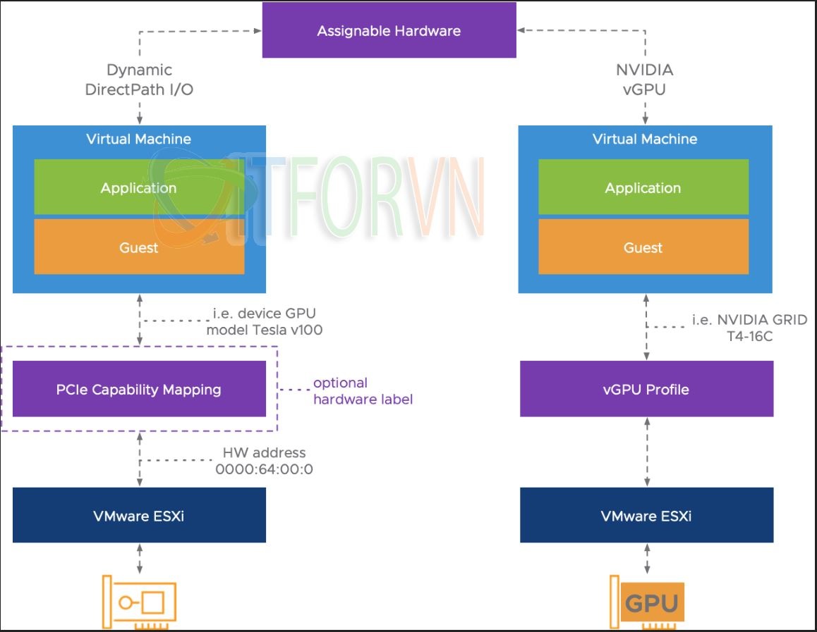 Assignable Hardware trong vSphere 7 cung cấp một cơ chế linh hoạt để assign các thiết bị PCIe với hỗ trợ Dynamic DirectPath I/O hoặc NVIDIA vGPU cho vị trí ban đầu cho các máy ảo trong cluster.