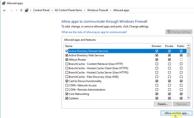 Hình 3.6: Allow App trong Firewall