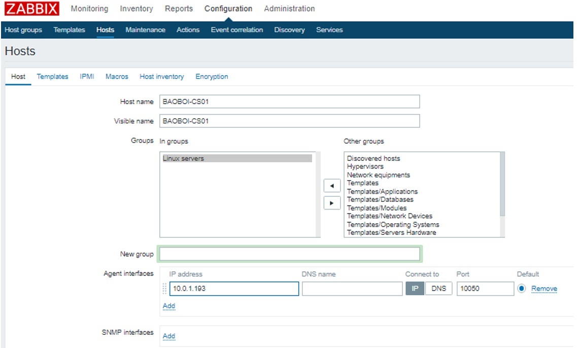Zabbix monitoring network 4: Cấu hình Add Host Centos