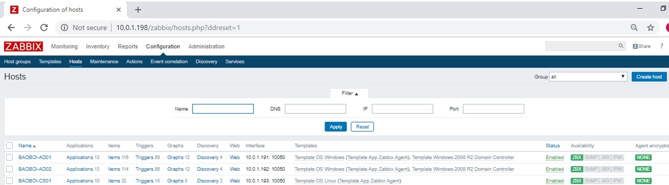 Hình 4.19: Giao diện của sổ Host sau khi add HOST BAOBOI-CS01