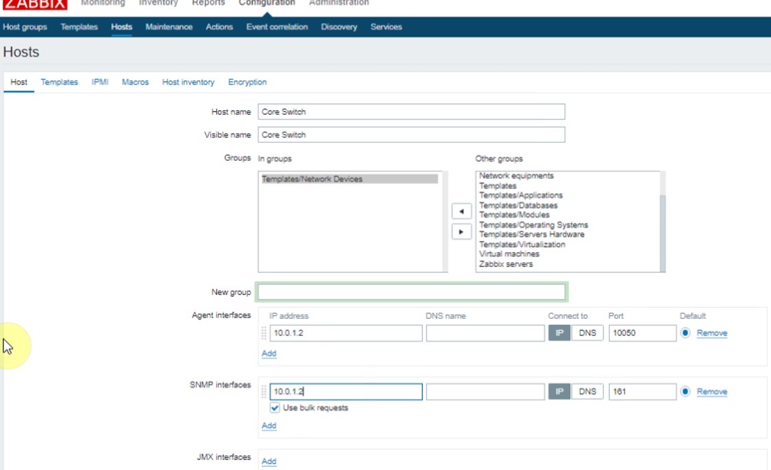 Zabbix monitoring network 5: Cấu hình Add Network Device